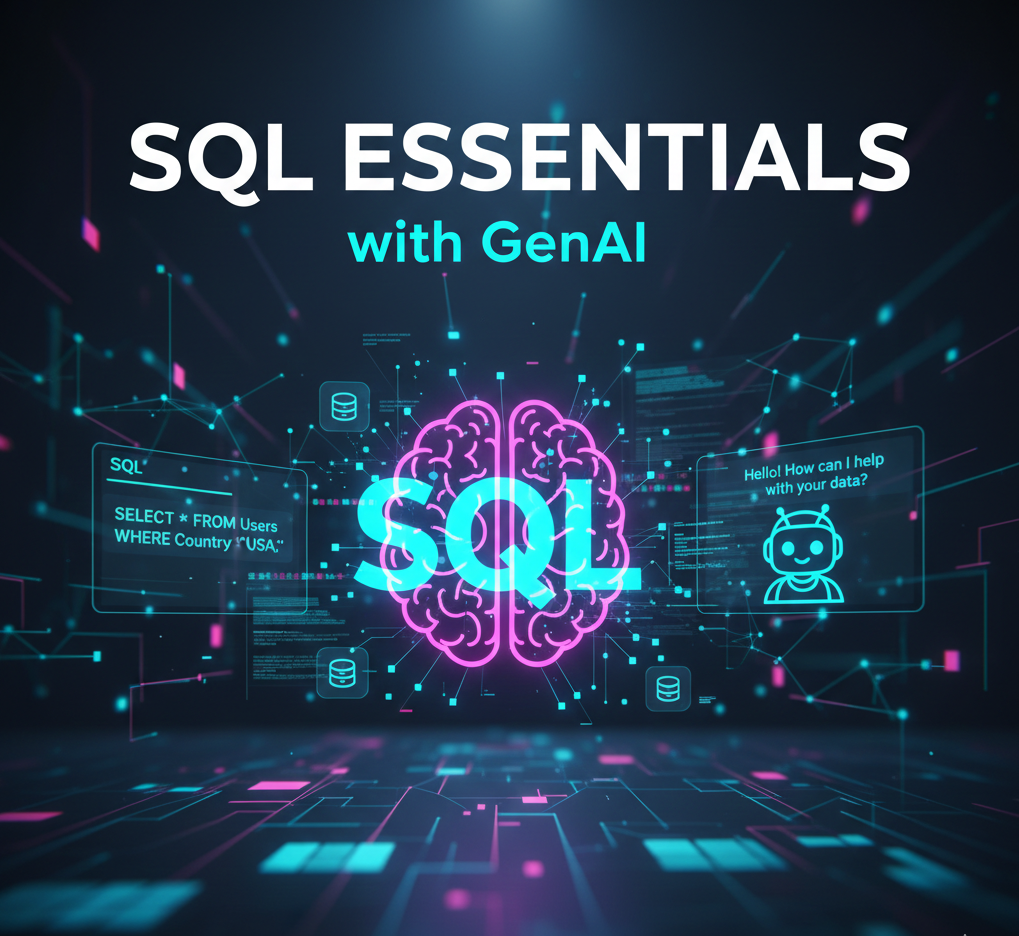 SQL Essentials with GenAI — A beginner-friendly course that teaches the fundamentals of SQL with the help of Generative AI tools for easier learning and practical application.