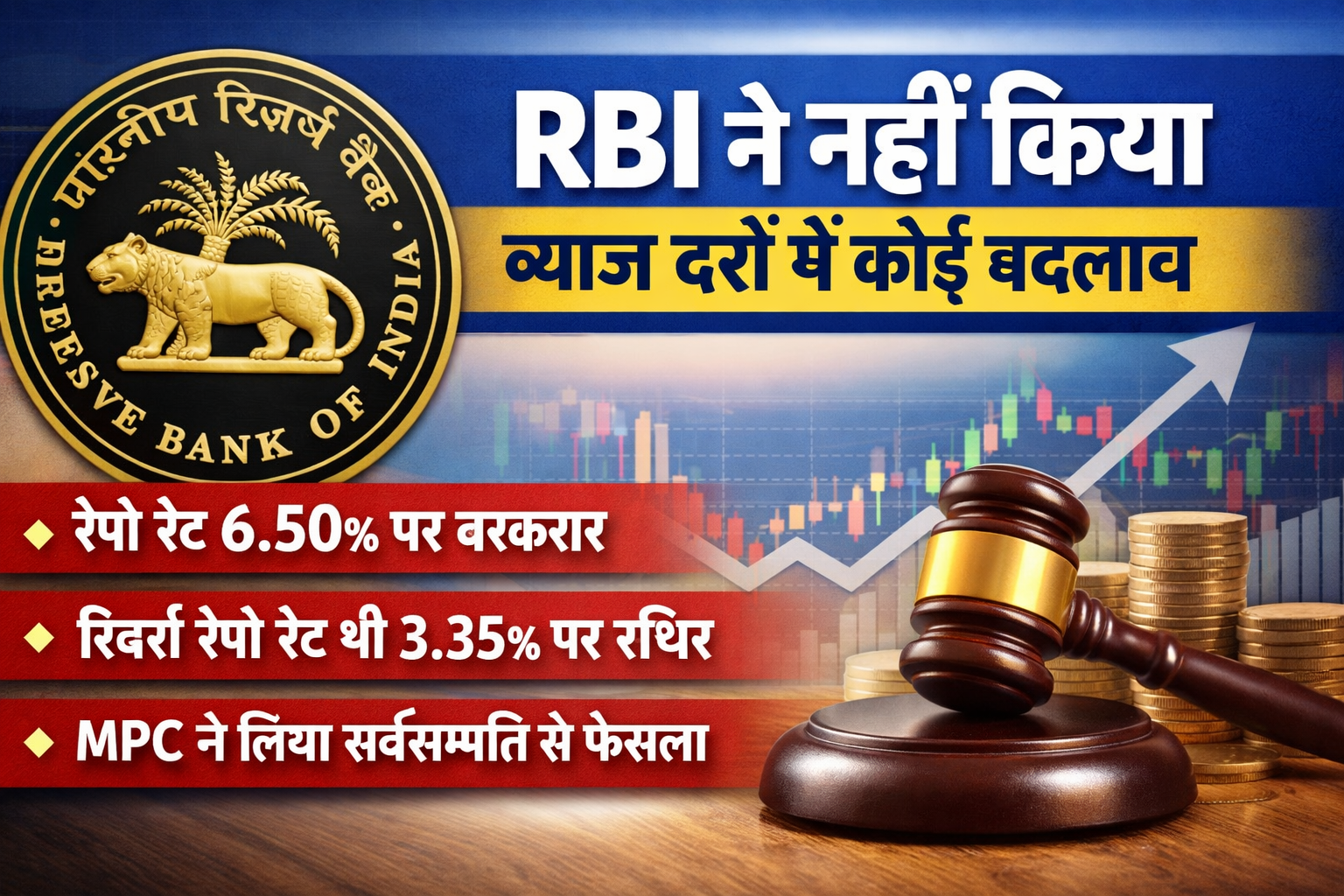 Read moreभारतीय रिजर्व बैंक (RBI) की मौद्रिक नीति समिति ने हाल ही में हुई बैठक में रेपो रेट को अपरिवर्तित (Unchanged) रखने का निर्णय लिया है। […]