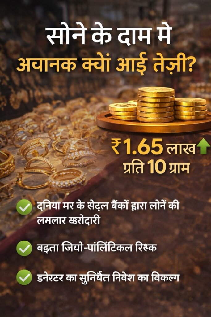 इसके अलावा, बढ़ते जियो-पॉलिटिकल जोखिम और निवेशकों की ओर से पोर्टफोलियो डाइवर्सिफिकेशन की मांग भी सोने के दामों को ऊपर ले जा रही है। अनिश्चित वैश्विक माहौल में निवेशक सोने को सुरक्षित निवेश विकल्प के तौर पर देख रहे हैं।
